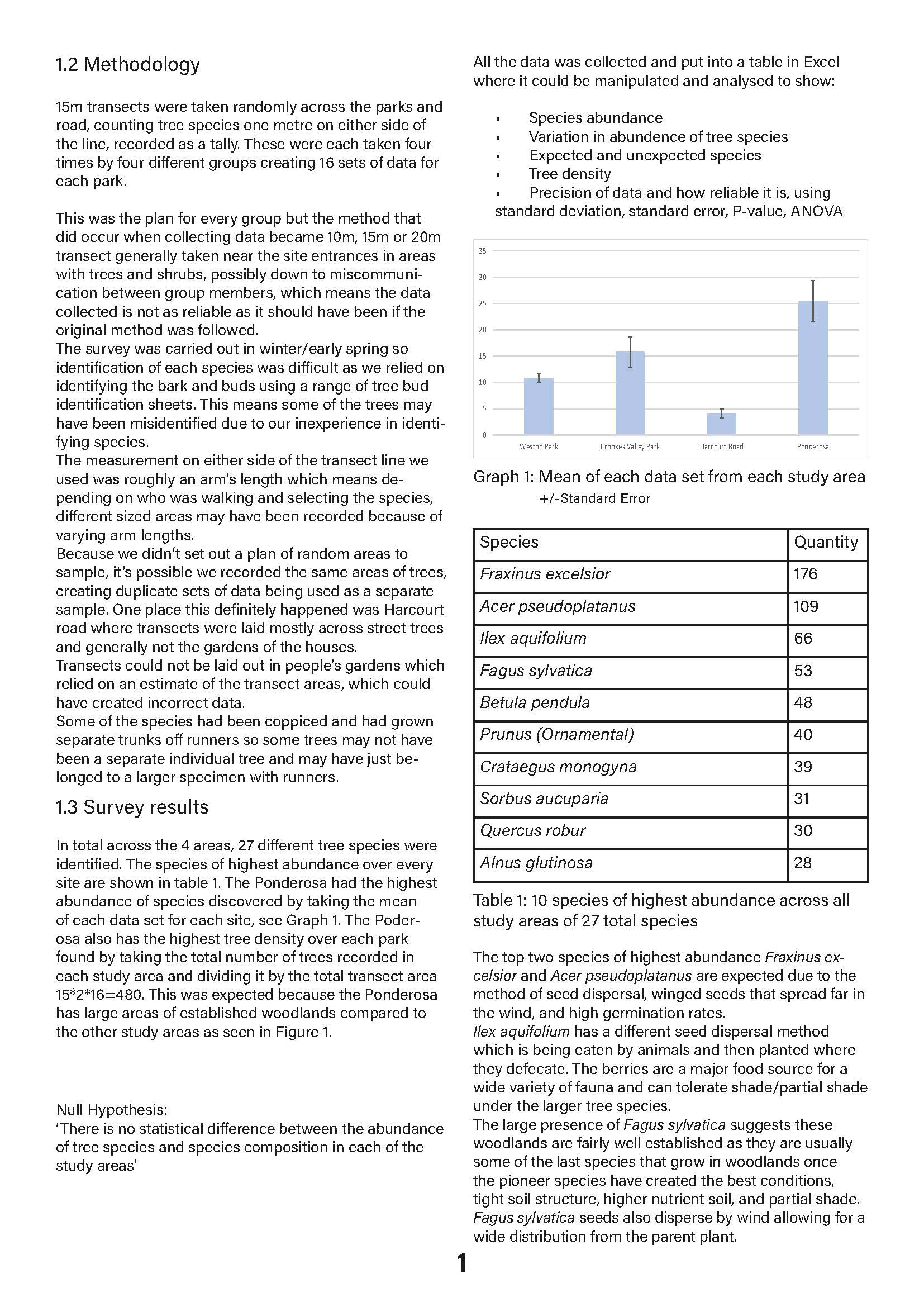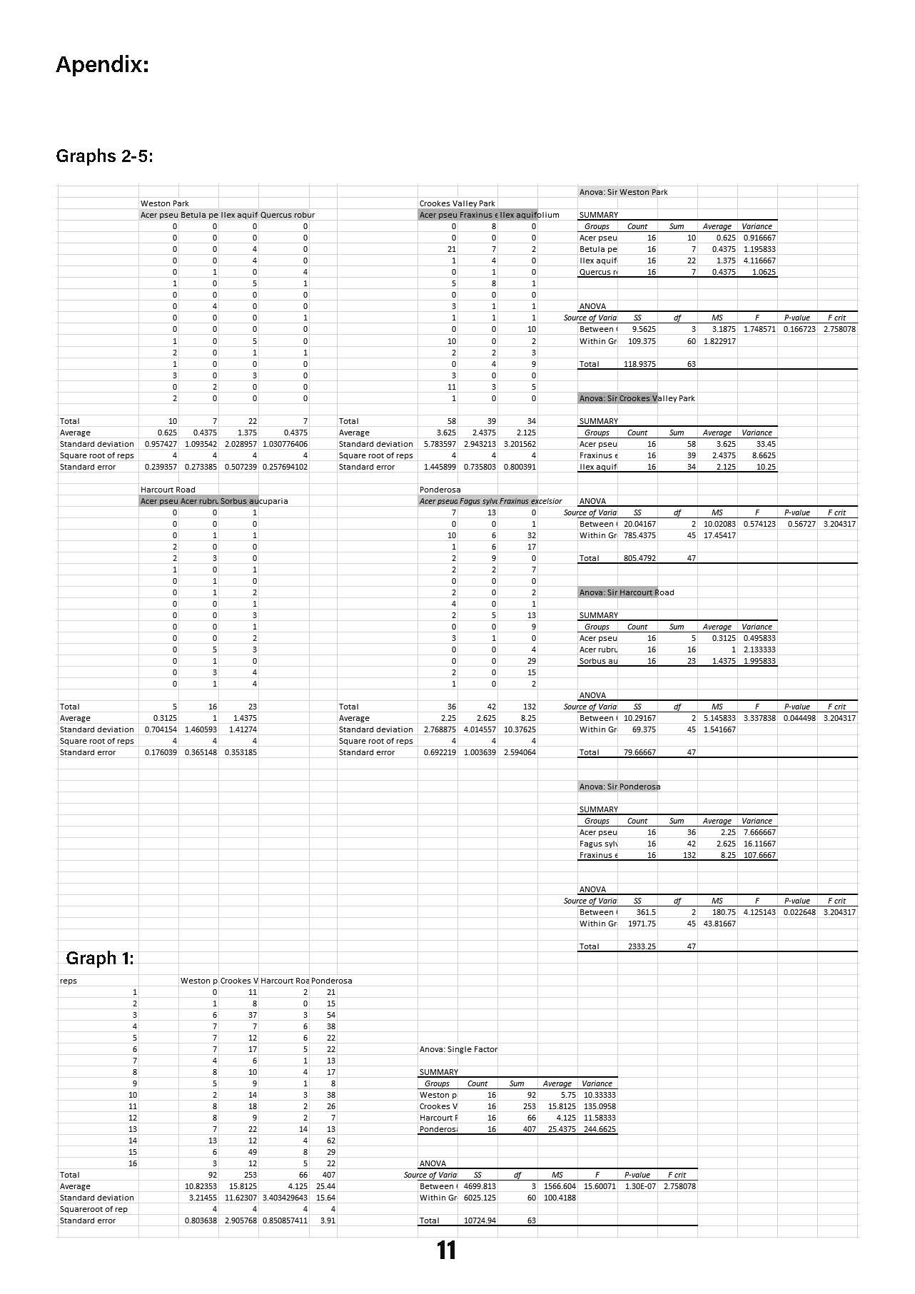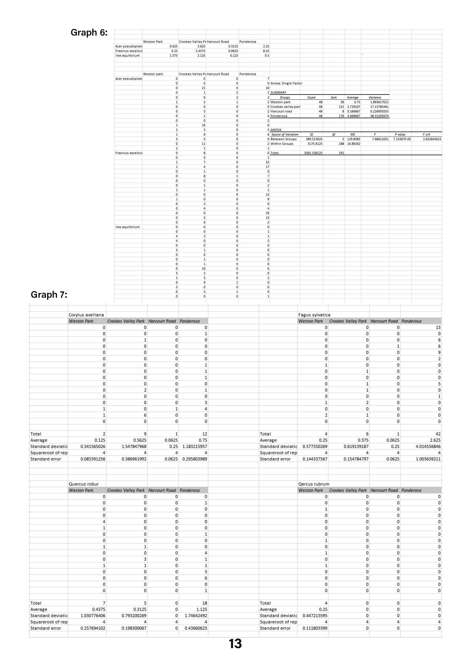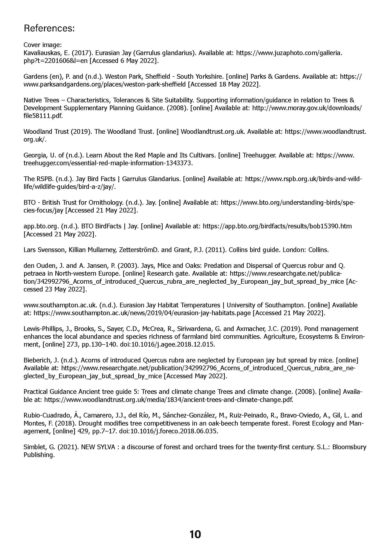 Ecology module looking at the suitability of Weston Park, Crookes Valley Park, Harcourt Road and the Ponderosa in Sheffield for the Jay (Garralus glandarius).
