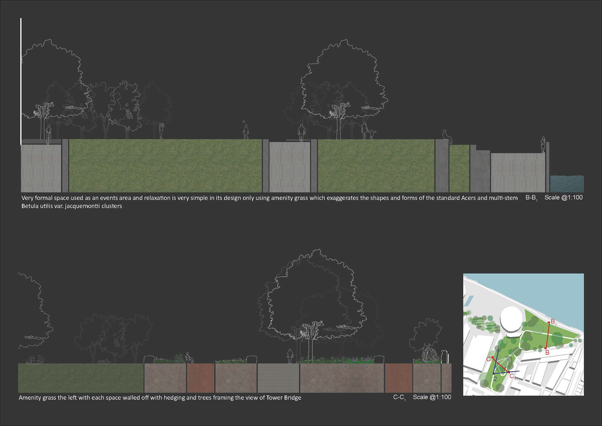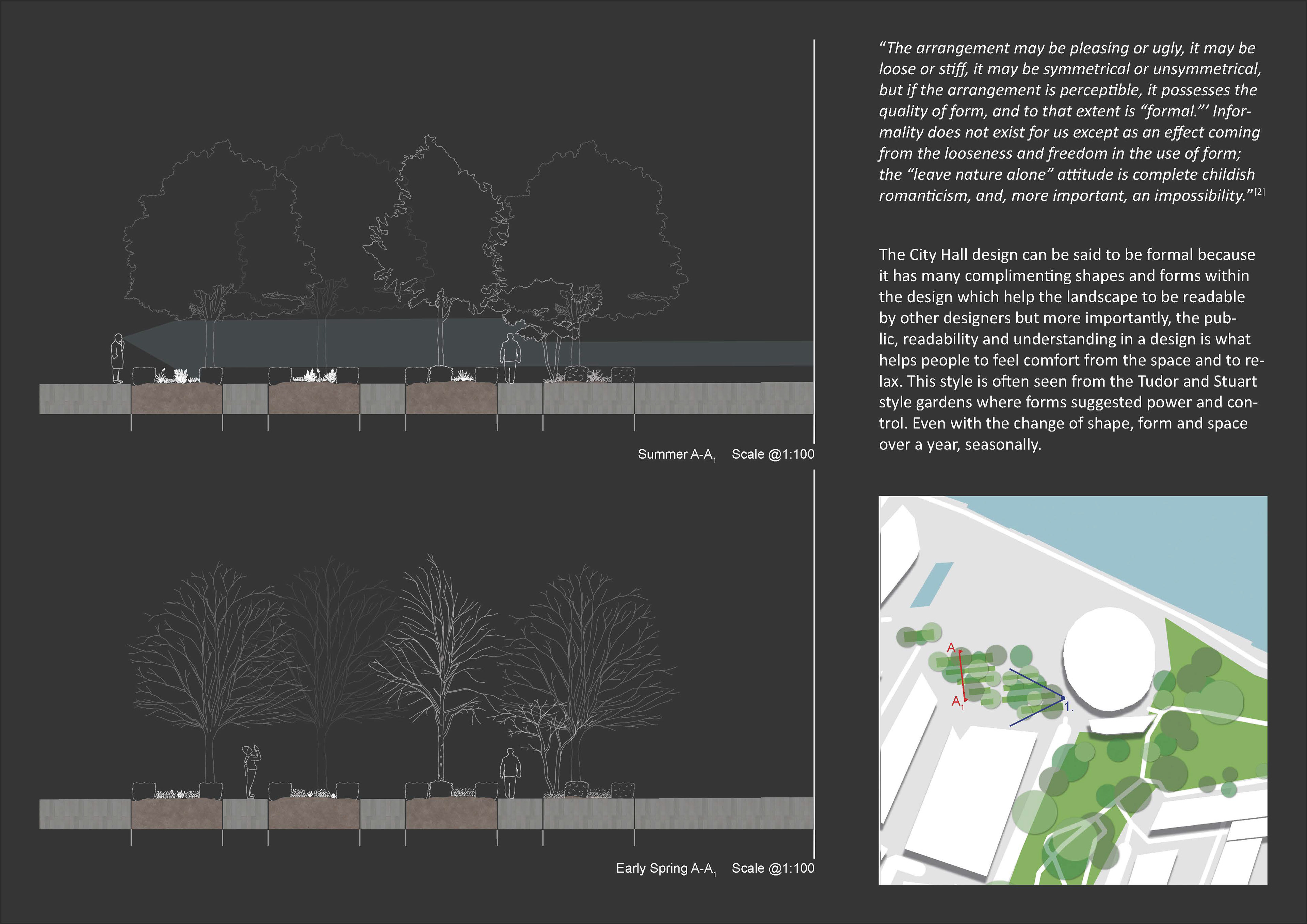 Looking at urban squares in London and how Landscape Architects used shape and form in their design and the effect it gives.